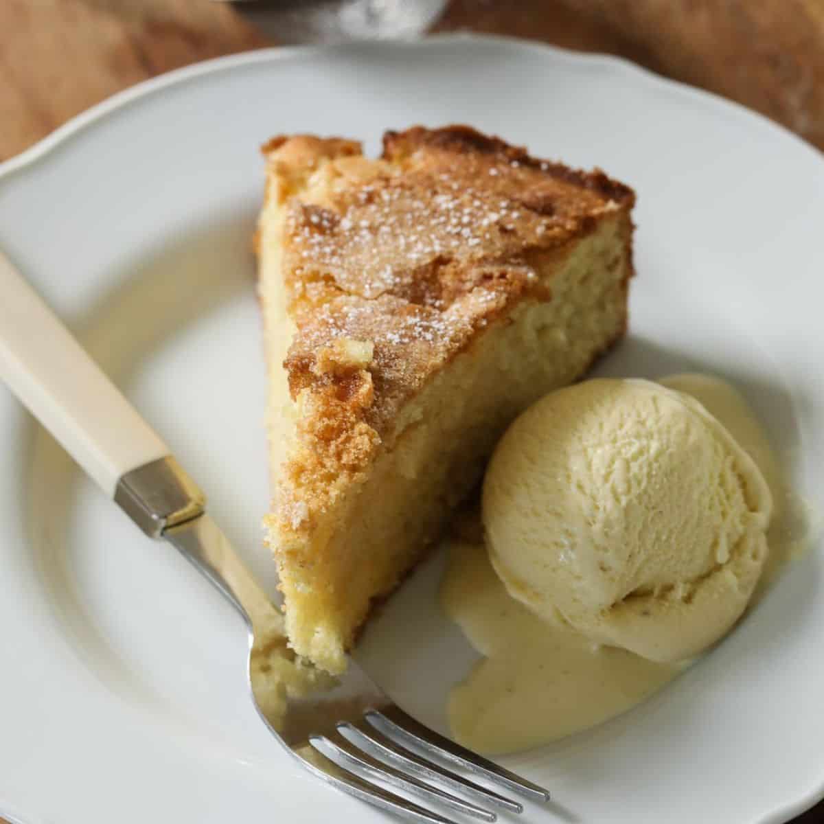 This French Apple Cake is a delicious combination of a moist interior and a crunchy exterior, loaded with soft tart apples and a hint of dark rum. Itโs so easy and yummy it will become your new favorite fall cake recipe. Itโs the perfect cake to make on a lazy Sunday when you are craving fall flavors but donโt feel like putting in the work for an apple pie or apple tart. Itโs homey, rustic quality is part of the charm!